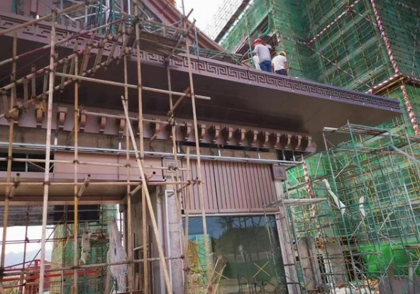 些KTV屋檐是出口單,出口緬甸的,制作工藝是鉚方通,工藝比其它的制作要麻煩一些,裝飾效果還未安裝,期待小編的下次更新。